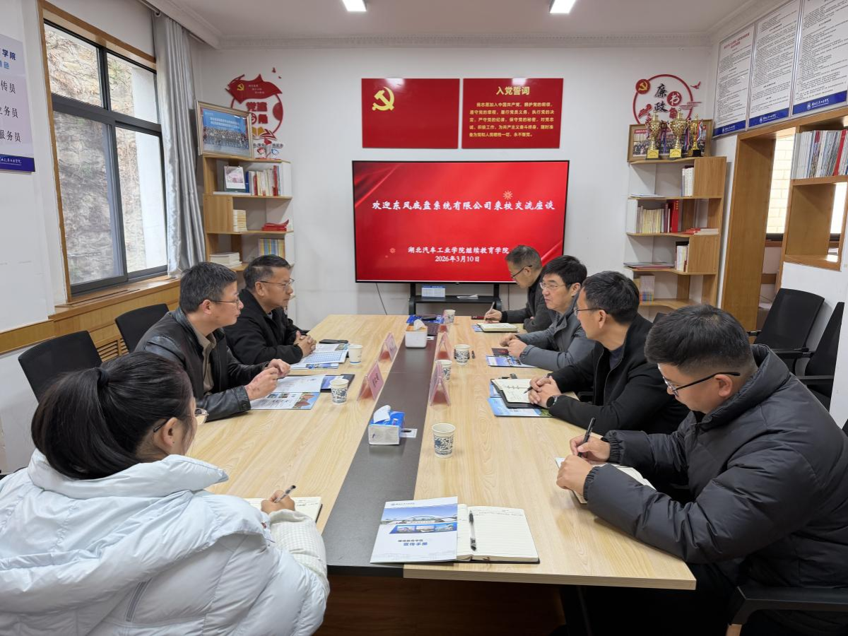 本网讯(文/图 雷金瑾)3月10日上午,东风底盘系统有限公司党委书记陈龙湘、人事总务部部长周红超一行莅临我校调研交流,继续教育学院领导班子成员及相关科室负责人参加座谈。
